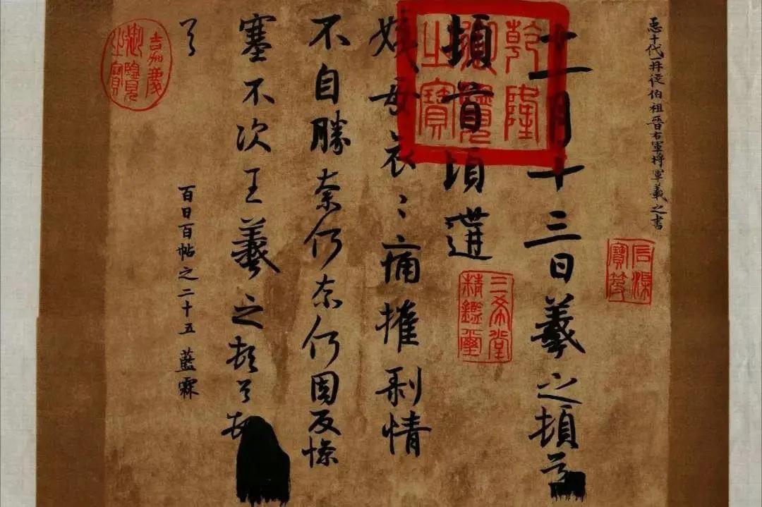 《姨母帖》為唐摹本,6行,42字。作品書法風(fēng)格,不類傳世王羲之諸摹本。其樸厚而多隸意,殊少遒美俊逸之姿。公元696年由唐代武則天命人雙鉤廓填,集于《萬(wàn)歲通天帖》中。