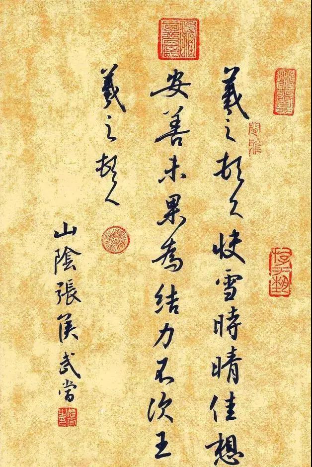 《快雪時(shí)晴帖》全文4行,28字。它是作為一封信札寫就的,其內(nèi)容是作者在大雪初晴時(shí)以愉快心情對(duì)親朋友人的問候。