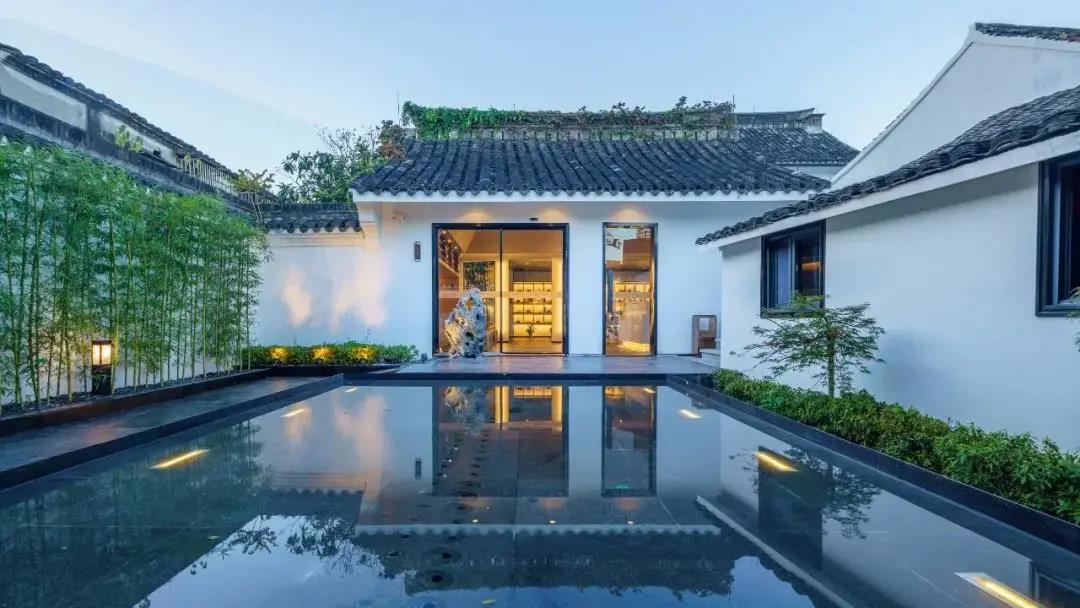 花筑的新中式庭院設(shè)計,沉淀了歲月,感悟了美好。四進(jìn)的宅院分別取自《蘭亭集序》中“崇山峻嶺,茂林修竹,天朗氣清,惠風(fēng)和暢……”之意境,深庭佳院、淡雅清新、琴韻茶香,只一眼便已傾心。