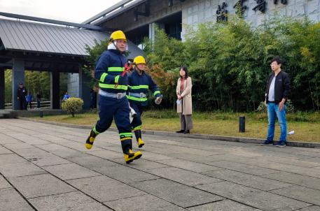 為確保景區(qū)在遇到突發(fā)火災時,能在最短時間內(nèi)充分發(fā)揮消防安全保障機制作用,快速、高效、有序地實施滅火工作,防止人員傷亡和最大限度地減輕財產(chǎn)損失,進一步普及消防安全知識,增強員工消防安全意識,結(jié)合消防宣傳月各項活動,11月17日下午,蘭亭景區(qū)在書法博物館廣場組織全體職工和安保人員進行了一次消防安全實戰(zhàn)演練。