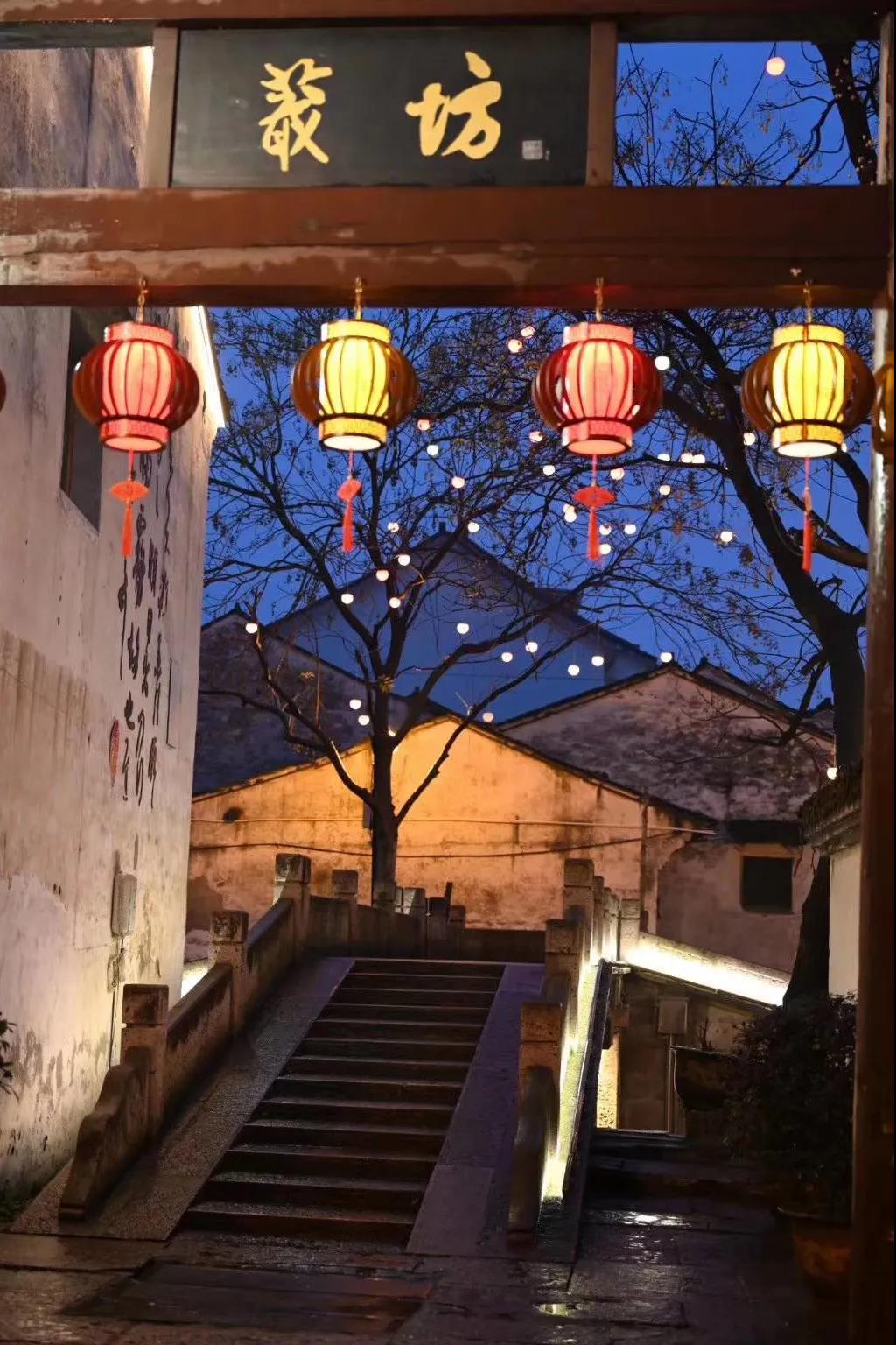 老街中透出的燈光猶如地上的星火,與天空互為輝映,為水墨夜色披上一層光輝。