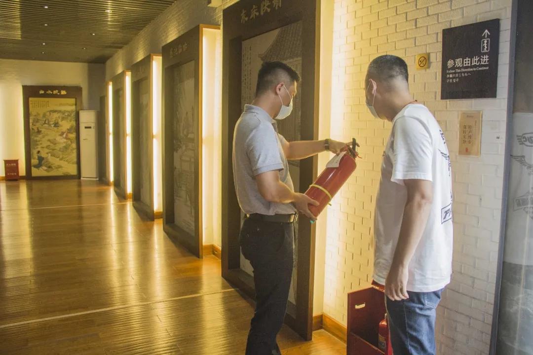 2.在距離起火點5米左右處,放下滅火器。在室外使用時,應占據(jù)上風方向。