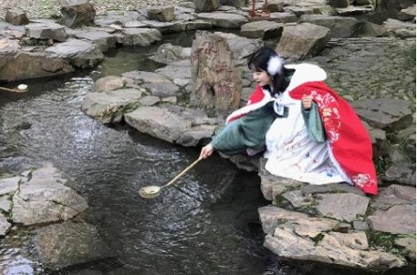 12月底,在蘭亭景區(qū)曲水流觴景點(diǎn)處,隨著盛滿紹興美酒的觴杯隨著之字形的曲水蜿蜒而下,“抖IN”網(wǎng)紅大咖和身著漢服的古代美人兒以善于發(fā)現(xiàn)美的眼光和善于記錄美的鏡頭,完成了在蘭亭景區(qū)的直播宣傳活動(dòng)。
