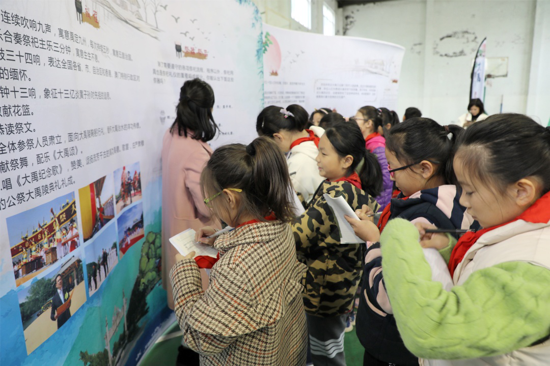 “以前只知道三過家門而不入的故事,現(xiàn)在我還知道了禹王爺爺治理黃河、畢功了溪、開創(chuàng)華夏第一個王朝的光榮事跡,真不愧是我國古代的治水、立國英雄。”不少同學(xué)在觀展后,表示自己對大禹的歷史地位、偉大功績有了更為全面的認(rèn)識。