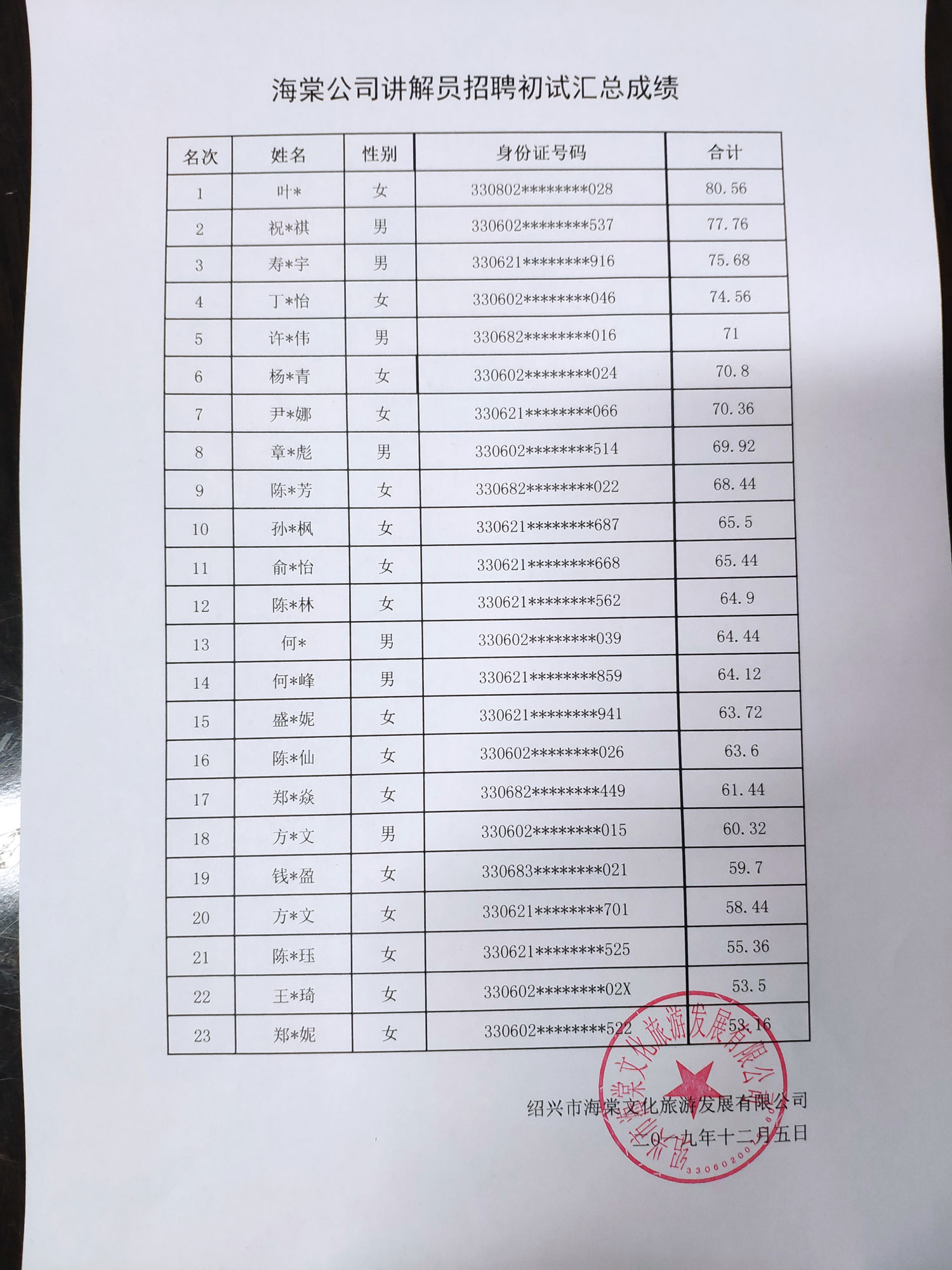 根據(jù)講解員初試情況,經(jīng)研究決定,初試總成績前12名人員入圍復(fù)試,復(fù)試時(shí)間、地點(diǎn)另行通知。