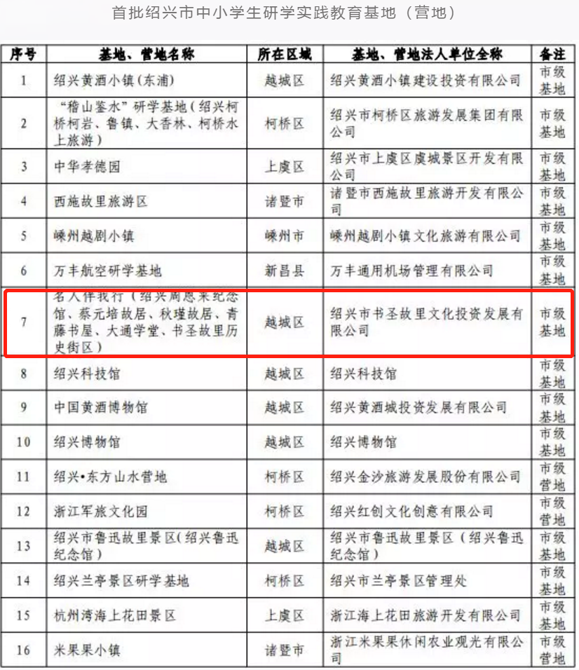 經(jīng)市教育局、市文廣旅游局共同評(píng)選,確定由紹興市文化旅游集團(tuán)下屬書圣故里景區(qū)和名人故居管理處共同打造的“名人伴我行”研學(xué)實(shí)踐教育基地為首批市級(jí)中小學(xué)生研學(xué)實(shí)踐教育基地之一。
