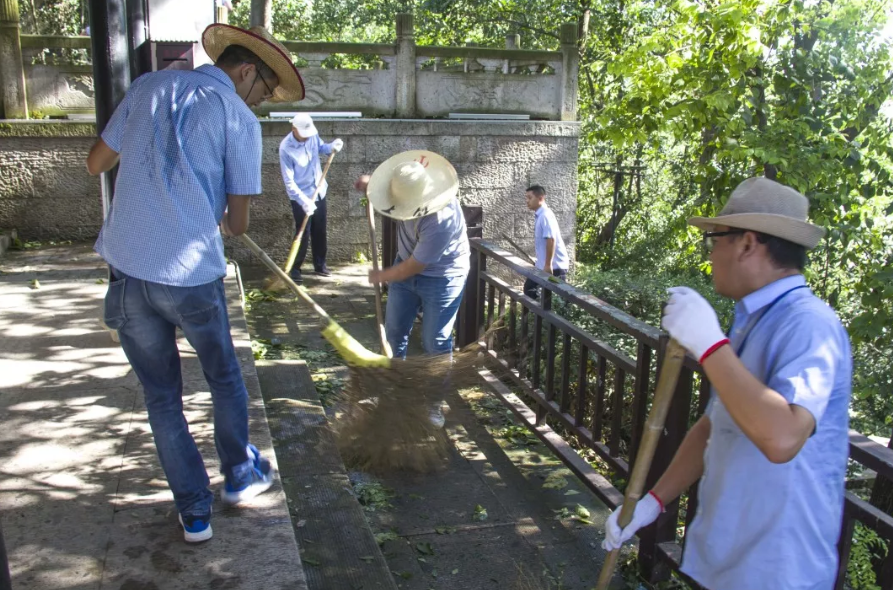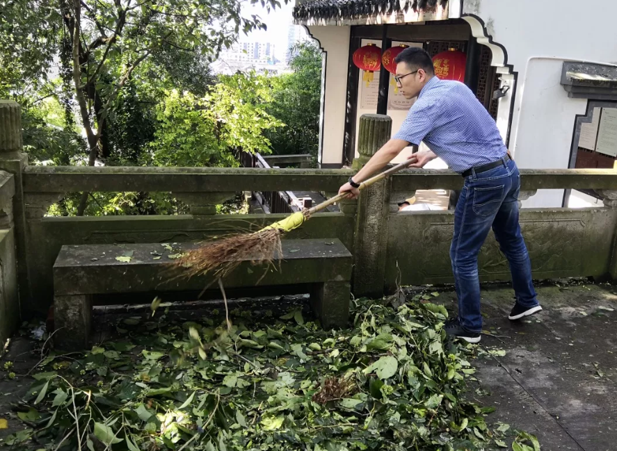 臺風過后,書圣故里景區(qū)黨支部書記、董事長龔凌帶領全體員工對景區(qū)開展清理工作,對景區(qū)內的落葉、垃圾進行徹底清掃,確保道路干凈整潔,為游客創(chuàng)造一個良好的旅游環(huán)境。