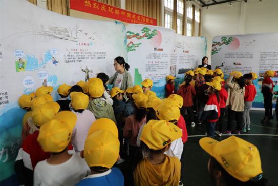 展陳內(nèi)容分為大禹功績(jī)、大禹記憶、大禹祭典、“五水共治”等部分,為同學(xué)們展示大禹的家世、生平,以及他在紹興留下的古老遺跡、歷史記錄。“五水共治”這一板塊,則將護(hù)水、愛(ài)水的思想融入中小學(xué)課外知識(shí)拓展中,增強(qiáng)青少年的環(huán)保意識(shí),普及“五水共治”知識(shí)。