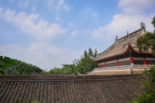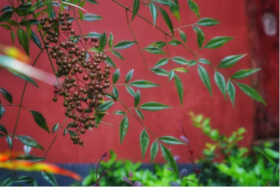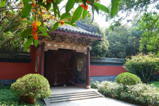 仲秋的陽(yáng)光正好,透過(guò)天上的云隙、透過(guò)地上的林蔭,在禹廟紅墻上勾畫(huà)出形態(tài)各異的葉影,不時(shí)隨風(fēng)珊珊而動(dòng);花叢林間,偶有秋蝶翩躚而過(guò)。