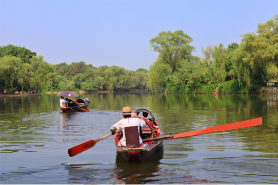乘著會(huì)稽烏篷,檣櫓輕搖;看著船下漣漪,徐徐漾去。習(xí)習(xí)涼風(fēng)中,猶能隱約聞到隔岸桂花香,如此沁人心扉,不禁想在這水色山間,逗留一刻,再逗留一刻。
