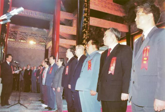 新中國(guó)成立后,中華民族喜迎新天。未曾改變的是,他們?nèi)匀簧钌钽懹浿茸嫦染鳚?,秉持自夏朝開(kāi)始便代代流傳的祀禹傳統(tǒng)。1995年4月20日,浙江省人民政府和紹興市人民政府聯(lián)合舉辦浙江省暨紹興市各界公祭大禹陵典禮。這是新中國(guó)成立以來(lái)對(duì)大禹陵的首次祭祀,間斷近六十年的祭禹典禮自此重回神州大地。