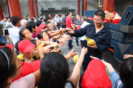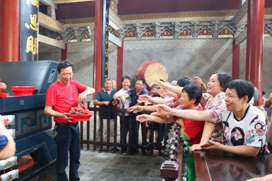 10時左右,2019年大禹后裔族祭活動正式結(jié)束,供品被分發(fā)到大家手中,意在“散福”,愿祖先福澤,常伴大禹后裔們。