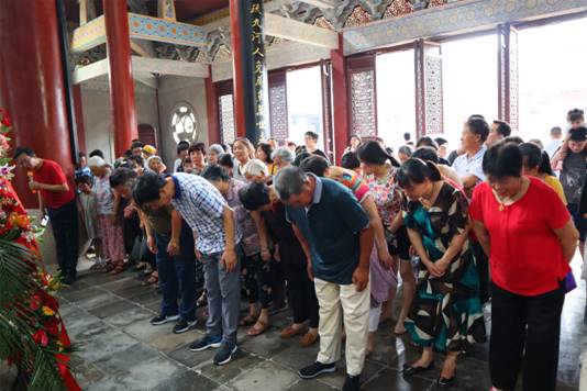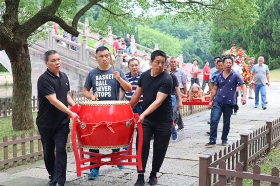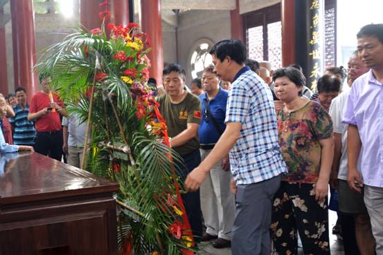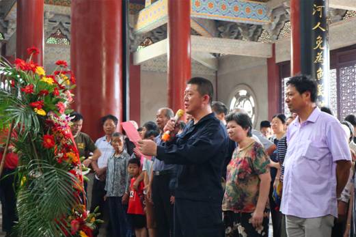 9 時50分,祭祀活動正式開始。全體肅立,敬獻祭品,焚香敬祖,獻上花籃。