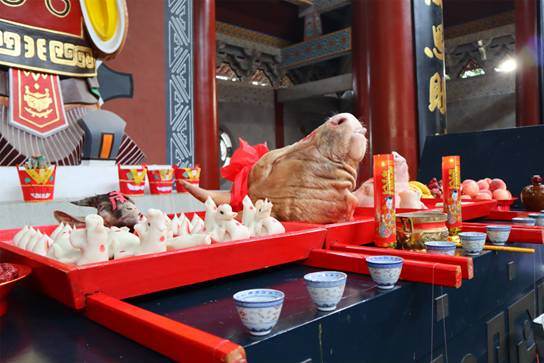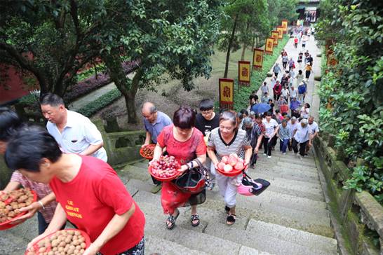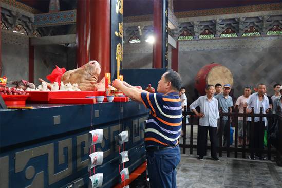 過午門、步臺階,大禹后裔們抬著三牲、五谷雜糧、水果等祭品,前往禹廟大殿舉行儀式。