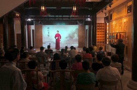 稽山書場,是閑園旗下的又一精品茶館書場。書場自試營業(yè)以來,以傳播傳統(tǒng)文化為己任,積極推行“文旅融合”,每天演出紹興地方戲,為游客和周邊居民提供優(yōu)質(zhì)的地方戲曲文化服務。稽山書場每晚19時30分開場,內(nèi)設散座、雅座兩種。散座票價30元/位(包含茶水),雅座票價50元/位(包含茶水、水果)。觀眾可通過關注“紹興閑園書場”公眾號預約留座,也可直接到稽山公園迎嵐閣現(xiàn)場購票。