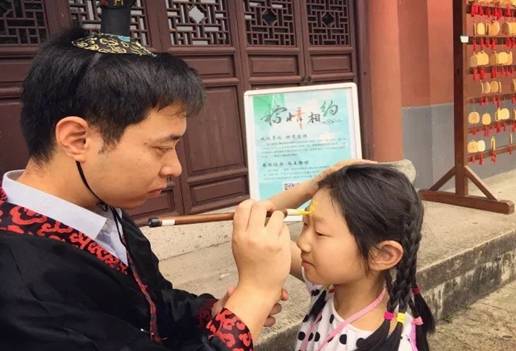按照漢族習(xí)俗,在端午節(jié)以雄黃涂抹小兒額頭可驅(qū)避毒蟲,健康平安。端午節(jié)期間,景區(qū)中將由禮生用“雄黃”在小兒額頭畫王字,以寄寓“開智、啟智”之意。