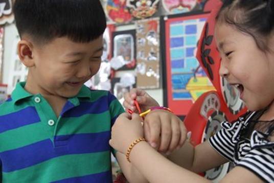 應(yīng)劭《風(fēng)俗通》記載:“五月五日,以五彩絲系臂,命人不病瘟”。系端午線為端午節(jié)的傳統(tǒng)習(xí)俗,其線顏色艷麗,有避邪驅(qū)蟲、防止五毒近身的功用。端午佳節(jié)期間,游客可憑票免費換取五色彩線,編成繩結(jié)佩戴在自己身上或贈予親朋好友,祈愿身體健康,事事如意。