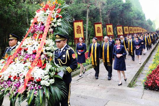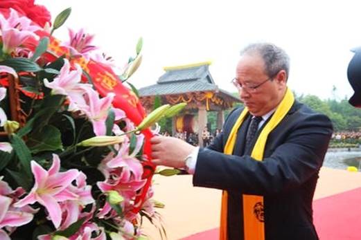 敬獻(xiàn)花籃。禮兵抬起主花籃,緩步走向祭祀廣場(chǎng),擺放在祭臺(tái)中央。主祭人彭佳學(xué)代表省委、省政府敬獻(xiàn)花籃,他仔細(xì)整理花籃綬帶,面向大禹陵三鞠躬。隨后,李衛(wèi)寧、張澤熙、吳文慶、馬衛(wèi)光、港澳同胞、臺(tái)灣同胞、海外僑胞、大禹后裔代表也敬獻(xiàn)花籃。