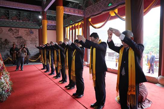 ![]() 宣讀畢,全體參祭人員肅立,面向大禹陵鞠躬行禮,緬懷大禹治水的豐功偉績(jī)。