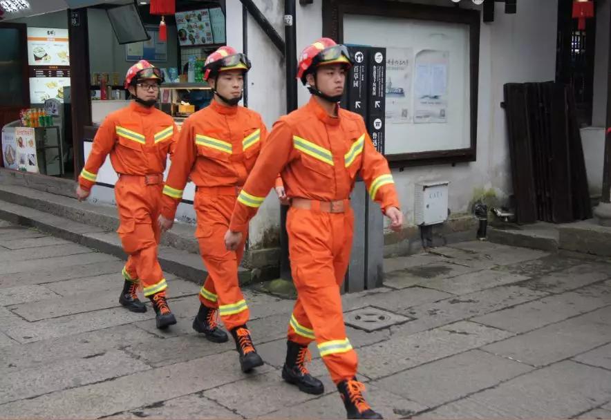 區(qū)消防大隊(duì)隊(duì)員在景區(qū)進(jìn)行日常消防安全巡邏,他們是景區(qū)消防安全的保衛(wèi)者。