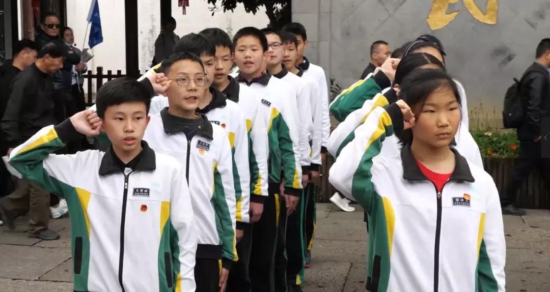 紹興文理附中的學(xué)生們朗誦入團(tuán)誓詞,風(fēng)華正茂。