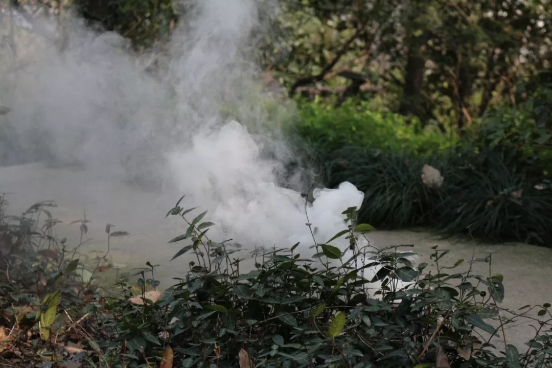 模擬游客在蕺山游步道游玩時(shí),將未熄滅煙頭扔在游步道邊緣草叢中,引發(fā)山林火情。