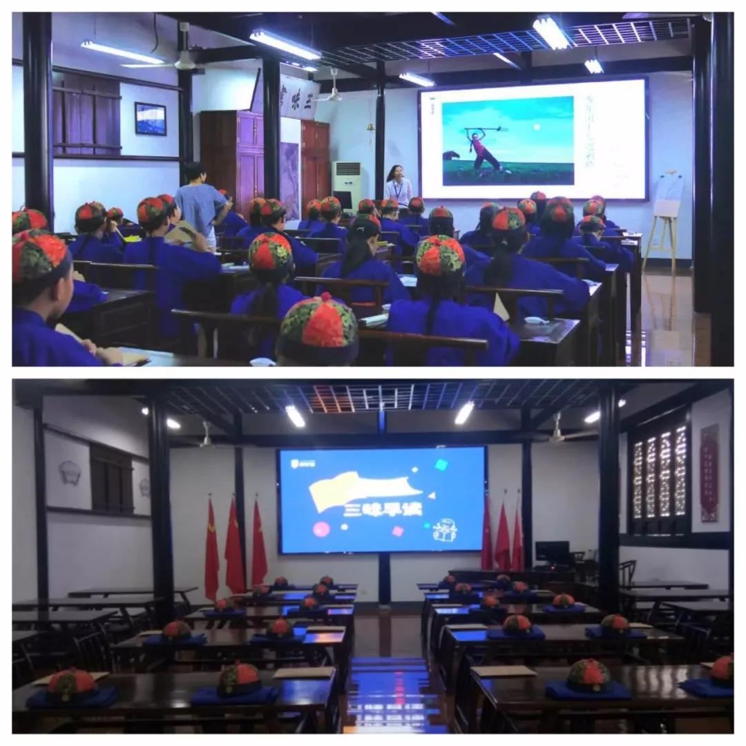 學生們不僅可以在景區(qū)指導老師的帶領(lǐng)下參觀魯迅童年樂園百草園,看筆下社戲、賞紹興年俗祝福,還可以在新開辟的仿真“三味書屋”,穿上長衫,戴上瓜皮帽,體驗一堂別具一格的“三味早讀”課。和私塾老先生一起讀《三字經(jīng)》、學對課、習大字、影描繡像、拓“早”字、做書簽、猜風物;也可以參加小組對抗賽,完成名句連連看、人物對對碰等游戲;還可以結(jié)合“早字故事”參加角色扮演,與私塾老師互動, 感受魯迅時期的私塾文化。