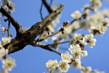 近日氣溫雖偏低,春天的腳步卻依然不動聲色地靠近,或許是聞得春之足音,青梅花始開。禹陵神道兩側(cè)、池邊坡上,都是那潔白的小花,遠(yuǎn)望霜雪壓樹,近看星點(diǎn)紛繁。