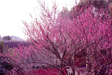 ![]() ![]() 這個時節(jié)的禹廟東皋窆石亭下,還有風(fēng)景獨(dú)好的“一枝春”——一樹紅梅,花開正宜。它的樹齡已近50年,春近,綻放得更為茂密,古老的會稽山水與紅梅梅相映,讓人不禁駐足觀賞。