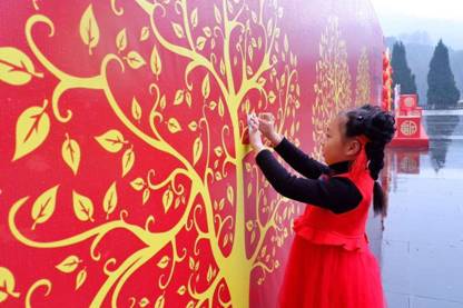 在許愿墻上,寫(xiě)下屬于自己的新年心愿。一筆一劃,皆作心聲。