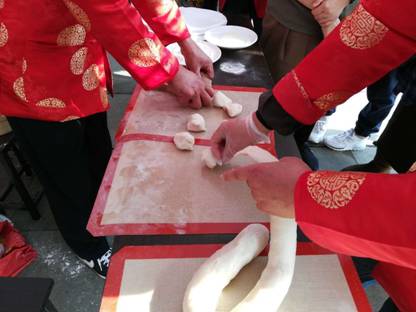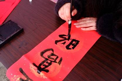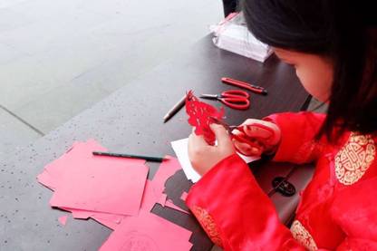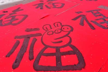 廣場(chǎng)另一邊,不時(shí)傳來(lái)叫好聲。人群中,竟有一位書(shū)法高手正在對(duì)聯(lián)紅紙上筆走龍蛇,頃刻間,一副工整的對(duì)聯(lián)便一氣呵成。趕緊沾沾吉祥話(huà)的喜氣,把對(duì)聯(lián)領(lǐng)回家!