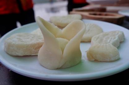 剛出鍋的米粉熱氣騰騰,師傅嫻熟地揉面、捶打,靠近一聞,香軟甜糯。年糕打成后,大家都小心翼翼地捧上一塊,細(xì)細(xì)品嘗。不少游客還躍躍欲試,親自體驗(yàn)打年糕這門(mén)傳統(tǒng)老手藝。