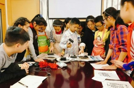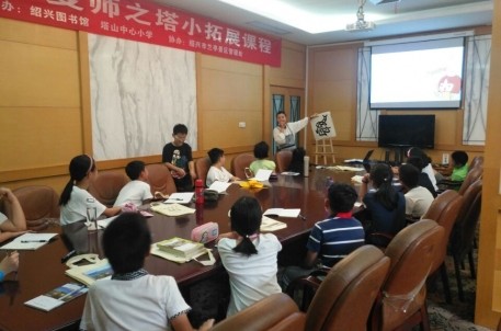 本學期課程于2018年9月12日開班,每周一次,共15次課,每次課程圍繞一個主題,蘭亭景區(qū)宣教部的講解員和其他工作人員受邀為同學們講述漢字起源、拓片小知識、中國印刷史、書法小知識、家譜知識等課程,在趣味性地傳授知識的基礎上,配合以拓包制作、金石傳拓、雕版印刷、古籍修復、線裝書制作等互動體驗活動。每一堂課力求以全新的知識點,調(diào)動學生積極參與互動、動手實踐操作,而作為參與這門新鮮出爐的校外拓展課的首批學生,16名四到六年級的小學生在每次一個半小時的課堂上都對老師講的內(nèi)容興致勃勃、認真聽課,在互動環(huán)節(jié)更是積極踴躍地舉手發(fā)言、上臺參加小組活動,課后都對下一次的課程充滿了期待。