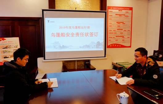 最后,景區(qū)副主任王姚威總結(jié)2018年烏篷船營(yíng)運(yùn)部取得的成績(jī),提出了安全經(jīng)營(yíng)要求,并與烏篷船營(yíng)運(yùn)部簽訂安全責(zé)任狀。