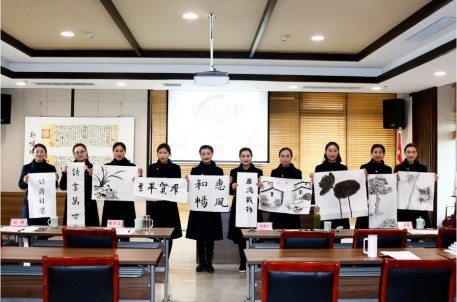 在“業(yè)務(wù)能力”考核過程中,講解員們個(gè)個(gè)精神飽滿、妝容精致,或靈動(dòng)、或大氣。個(gè)性獨(dú)到的講解配以ppt演示,將評(píng)委們引入一個(gè)個(gè)生動(dòng)鮮活的精神世界,追憶著承載紹興一段段漫長崢嶸的歷史?!?/span>五星”講解員胡安娜,經(jīng)驗(yàn)十足、親和力極強(qiáng),結(jié)合景區(qū)打造研學(xué)游背景,繪聲繪色地給與會(huì)人員上了一堂“紙文化書法課”;四星級(jí)講解員丁雪穎,靈氣滿溢,情緒飽滿,結(jié)合時(shí)下熱播劇給在場(chǎng)嘉賓帶來了一場(chǎng)“亭”建筑文化盛宴;俞昕,傅兢嫻兩位雖是“講壇新人”,卻“潛力十足”,端莊的姿態(tài)、生動(dòng)的講解、良好的互動(dòng),讓評(píng)委聽到、看到了新晉員工的嶄新面貌。而在隨后的才藝展示環(huán)節(jié)中,講解員們揮毫潑墨,或書法,或繪畫,展現(xiàn)了蘭亭人兒濃郁的文化滋養(yǎng)。
