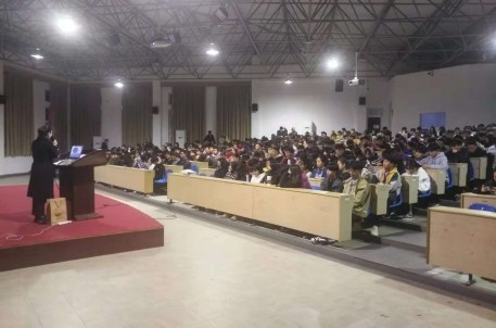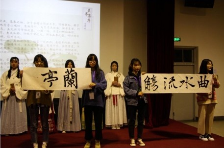 宣講以微博上的熱點趣事展開,幽默輕松的開場立刻吸引了同學們的注意力。聲情并茂的景點介紹,也讓同學們了解了文化蘭亭的魅力?;迎h(huán)節(jié)中,紹職院漢服社同學穿戴漢服朗誦《蘭亭序集》,朗朗書聲中還有書法社的學生代表書寫“曲水流觴”和“蘭亭”等作品,展現(xiàn)了書法的魅力和優(yōu)美。兩位宣講員還向同學們展示了蘭亭景區(qū)自主開發(fā)的文創(chuàng)產(chǎn)品,這些產(chǎn)品即是文化的縮影,又顯示了豐富深厚的文化特色。宣講員通過有獎競猜活動,送出了這些文創(chuàng)禮品,同學們踴躍參加,熱情高漲。