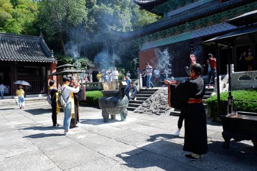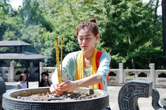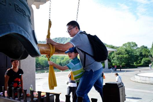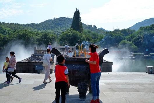 在祭禹廣場(chǎng),不少游客為家人朋友請(qǐng)上清香,撞響祈福鐘,在此冀盼那些美好愿望能夠?qū)崿F(xiàn)。
