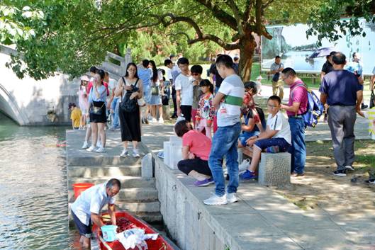 新鮮的紅菱口感爽脆清甜,受到游客朋友們的喜愛。