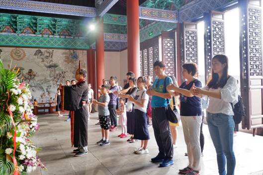 享殿里,游客跟隨禮生以古服古禮祭禹,體驗(yàn)祭祀文化,傳承華夏習(xí)俗,祈求幸福安康。