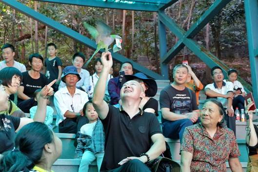 國(guó)慶期間,每日數(shù)場(chǎng)的鳥技表演,可愛的小家伙們與游客熱情互動(dòng),逗得游客們?nèi)炭〔唤?/span>