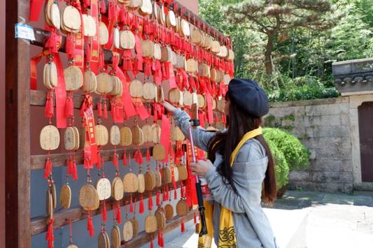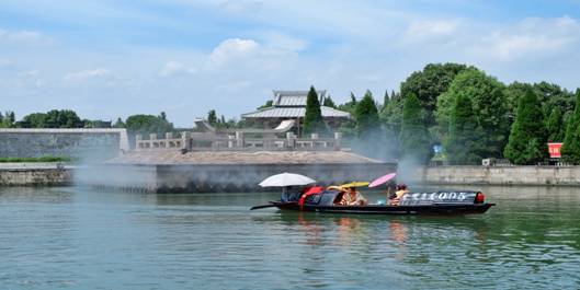 烏篷靠岸,景區(qū)講解員引領(lǐng)大家進(jìn)入禹陵中。