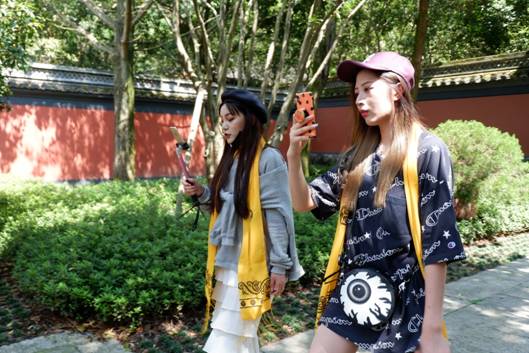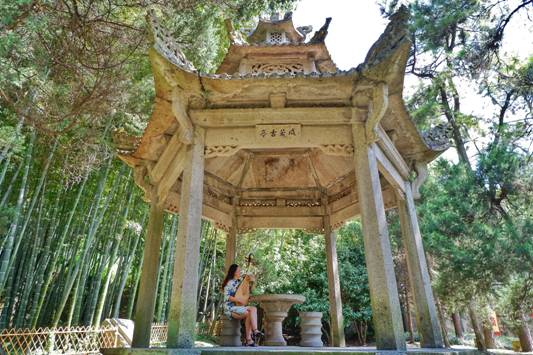 步入甬道,忽聽(tīng)得一陣弦樂(lè)悠悠。定睛而視,原來(lái)是咸若古亭中身著旗袍的女子在為嘉賓們演奏古樂(lè)。