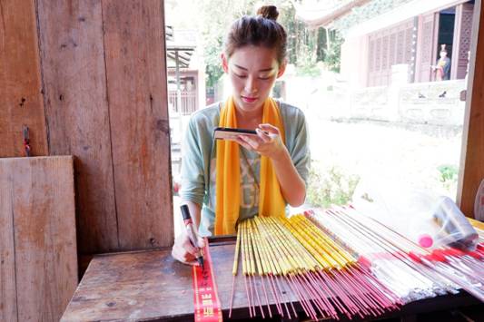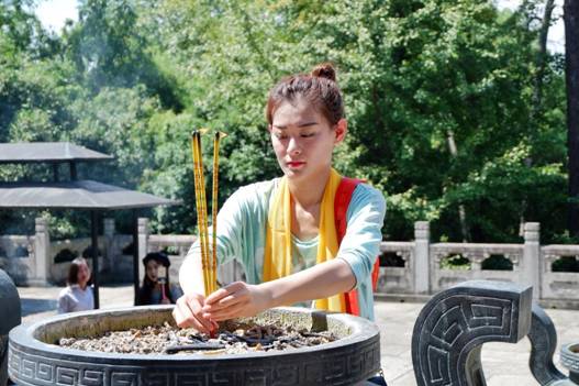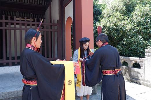 再往前走,林葉陰濃,風(fēng)竹珊珊。拾階而上便是享殿,氛圍莊嚴(yán)肅穆,由禮生為嘉賓佩上佩巾。
