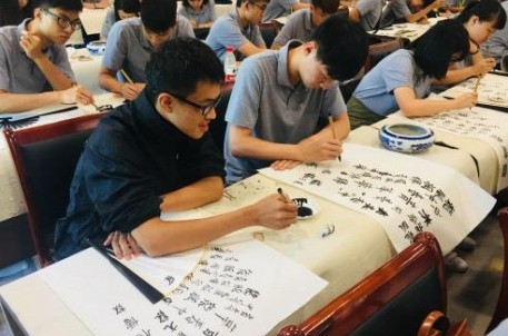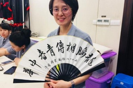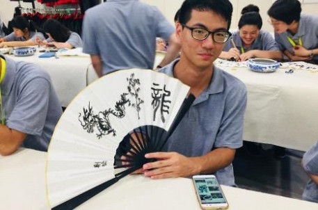 大陸、臺灣一衣帶水、血脈相連,兩岸同胞同宗同族有著相同的傳統(tǒng)文化背景,而書法,也是許多臺灣學(xué)生自小學(xué)以來就開始研習(xí)的傳統(tǒng)國學(xué)課程,蘭亭,作為祖國書法文化的發(fā)源圣地,必將承擔(dān)起書法文化弘揚及傳承的教育使命。本次活動,景區(qū)特邀浙江省工藝美術(shù)大師、浙江省書法家協(xié)會會員王仲章老師,結(jié)合景區(qū)特色書法研學(xué)活動項目扇面寫字,針對扇面書法發(fā)展簡史、扇面寫字布局、扇面寫字技巧運用、扇面裝裱等為同學(xué)們開講了一堂專業(yè)而生動的書法課。同學(xué)們紛紛在現(xiàn)場揮毫潑墨,寫下以“龍脈相傳 青春中華”為主題的扇面作品,將本次臺灣大學(xué)生夏令營在蘭亭的活動推向了高潮。