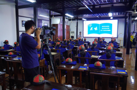 今天上午10點(diǎn),紹興電視臺(tái)新聞綜合頻道來(lái)到魯迅故里三味書(shū)屋采訪全新升級(jí)的研學(xué)游活動(dòng)。攝制組一行人采訪了研學(xué)游講解員,現(xiàn)場(chǎng)觀摩了“三味私塾體驗(yàn)課”教學(xué)活動(dòng),深入了解了研學(xué)游的流程和亮點(diǎn)。