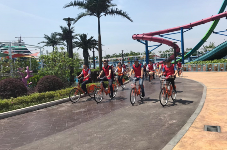 簽約儀式結(jié)束后,雙方黨員一起參加了鏡湖樂園正在舉辦的“社會(huì)人、愛騎行——騎遇夢(mèng)幻水世界”的騎行活動(dòng),邁出了結(jié)對(duì)共建的第一步。