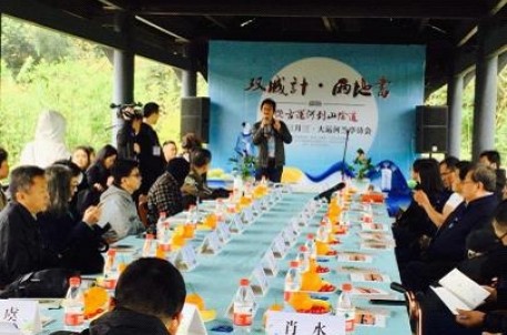 4月15日上午,2018年三月三·大運河蘭亭詩會伴隨著悠揚的古曲在蘭亭景區(qū)騁懷橋上拉開了序幕。全國人大常委會委員、中國作家協(xié)會黨組成員吉狄馬加主席出席了本次詩會活動。杭州、紹興兩地詩會嘉賓品茗春茶、暢敘幽情,佳作頻出。中國作協(xié)會員、紹興作協(xié)副主席東方浩還代表本場嘉賓發(fā)言,暢談從古至今,杭紹兩地詩人為璀璨的詩詞大運河文化做出的貢獻,詩詞大運河屬于我國大運河文學與大運河文化的高級層次,孕育了唐宋詩詞文明,呼吁當代詩人沿著山陰古道至大運河,重溫并發(fā)掘中國燦爛的詩詞文化。詩會最后,各位嘉賓還參與體驗了景區(qū)特色仿古演藝曲水流觴活動,江詩會活動推向了高潮。