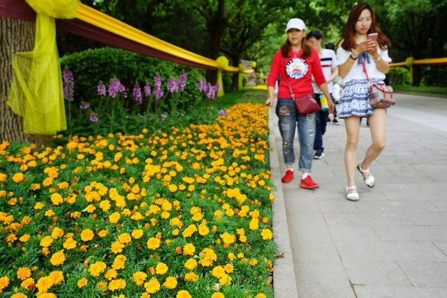 進(jìn)入景區(qū),杜鵑花、魯冰花、萬壽菊、毛地黃等,花開爭艷,為游客營造一個步步有景、步移景異、浪漫寫意的休閑游覽空間。