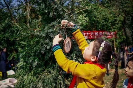 隨后,市民朋友們?cè)诂F(xiàn)場園藝師的指導(dǎo)下,開始刨坑、下苗、培土、澆水,忙得不亦樂乎。景區(qū)還為大家準(zhǔn)備了認(rèn)養(yǎng)牌,寫上美好的祝愿和認(rèn)養(yǎng)人姓名,親手將它掛在自己所種的香榧樹上,和小樹苗一同滋潤陽光雨露,共同成長進(jìn)步。