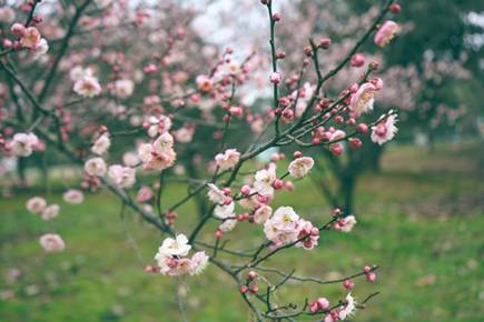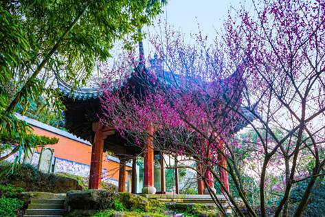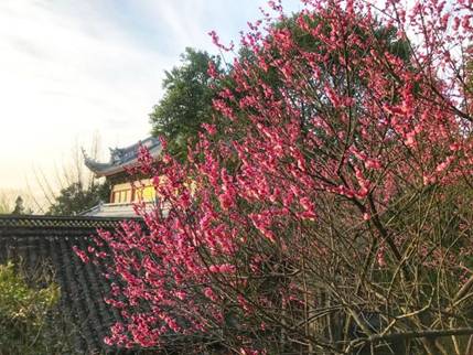 景區(qū)內(nèi)約有800余株梅樹,各色梅花競相開放,疏影橫斜,暗香浮動,展現(xiàn)其芬芳而不傲寒霜的“芳華”。